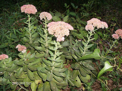 I kind of expected it to act like this sedum, which was another native I found a spot of in the far corner my front border. Talk about lonely. The original plant for this thing were just a few lanky seedlings, trying to survive, almost out of sight, certainly out of mind. I spotted a few flowers on it in the early fall that first year, and surmised it must be something, and the next spring I dug it up and put it in the sun. It grew enormously the first year, and did really well. I was able to divide it and use it as an anchor in the upper border. Eventually I divided it into four plants and they are all doing great except when the deer get ahold of them. Deer think this plant is TASTY. This plant is tough, but not that tough!